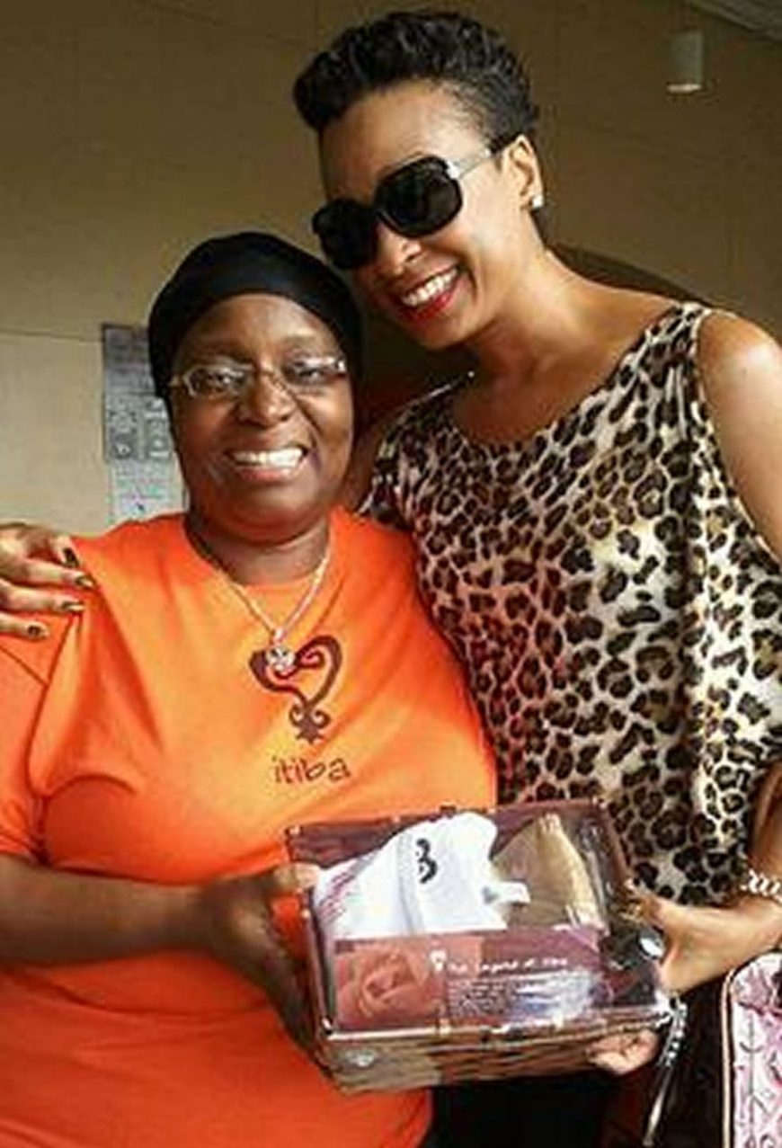 Jamaican Reggae artist Alaine Laughton receives her own basket of itiba products custom made for her on her arrival to St. Croix, US Virgin Islands in 2012 for her Strength of A Woman concert.